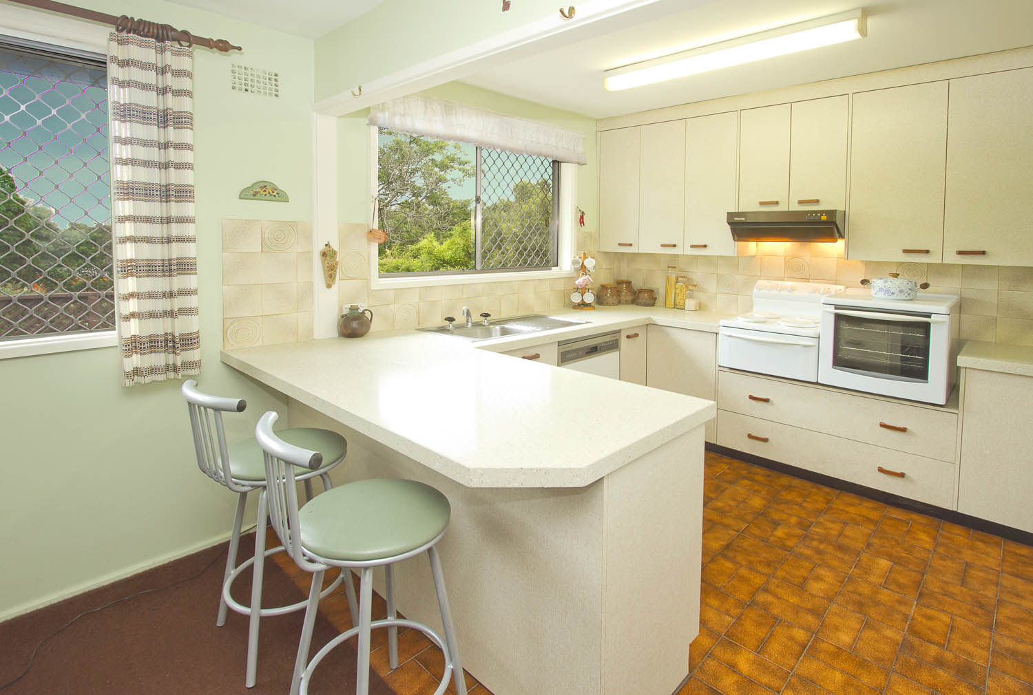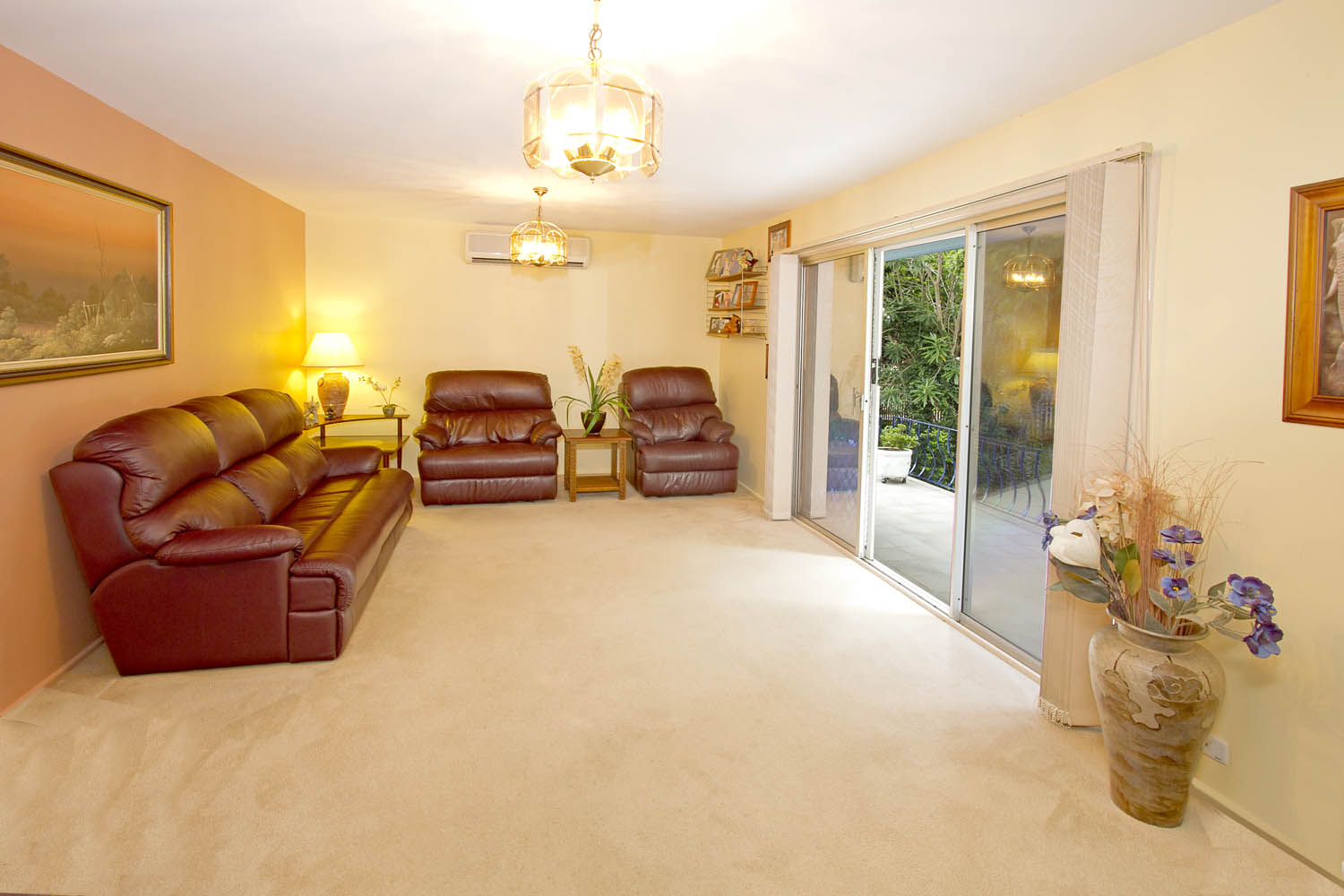 The large air-conditioned living area overlooks the tranquil front garden via ‘one way view’ windows opening onto a sheltered patio. The large open plan kitchen features ample cupboard space, a breakfast bar and Caesar Stone benches. Casual dining leads outside to an expansive open-air deck overlooking a generous area of lawn, and elevated green views dominated by trees. The three sizable bedrooms feature leafy green outlooks, and are peacefully removed from living areas.