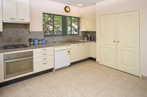A galley style kitchen features a solid marble bench top and splash back, and includes dishwasher, stainless steel gas stove, oven and rang-hood, while the sunlit bathroom consists of a full tub with separate shower. Set at the end of a short hall the bedroom comes complete with a built-in-robe, plush carpet and air conditioning for the warmer months. The security building also features undercover secure parking.