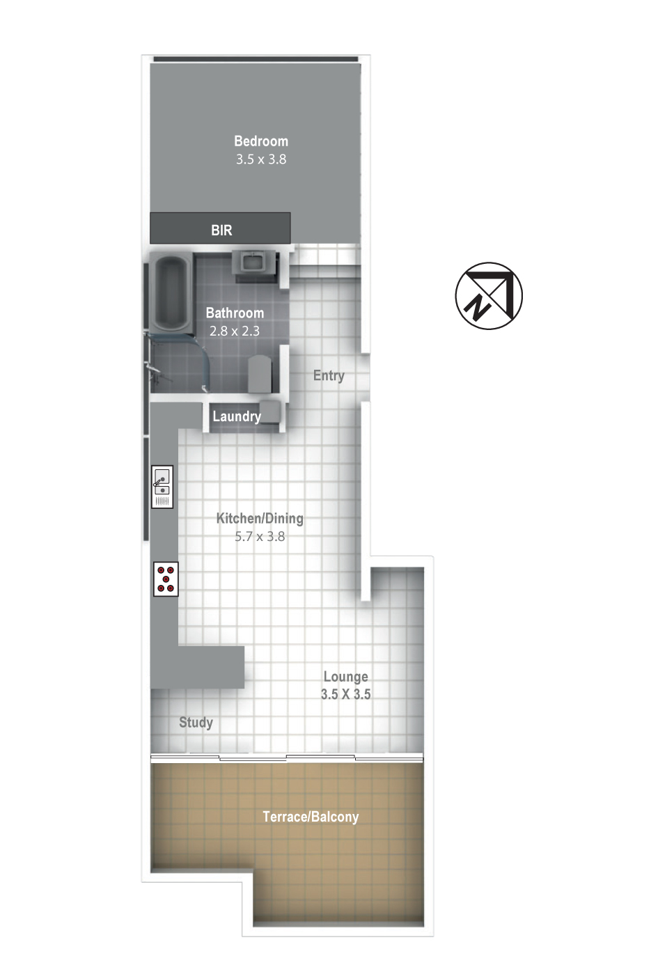 A galley style kitchen features a solid marble bench top and splash back, and includes dishwasher, stainless steel gas stove, oven and rang-hood, while the sunlit bathroom consists of a full tub with separate shower. Set at the end of a short hall the bedroom comes complete with a built-in-robe, plush carpet and air conditioning for the warmer months. The security building also features undercover secure parking.